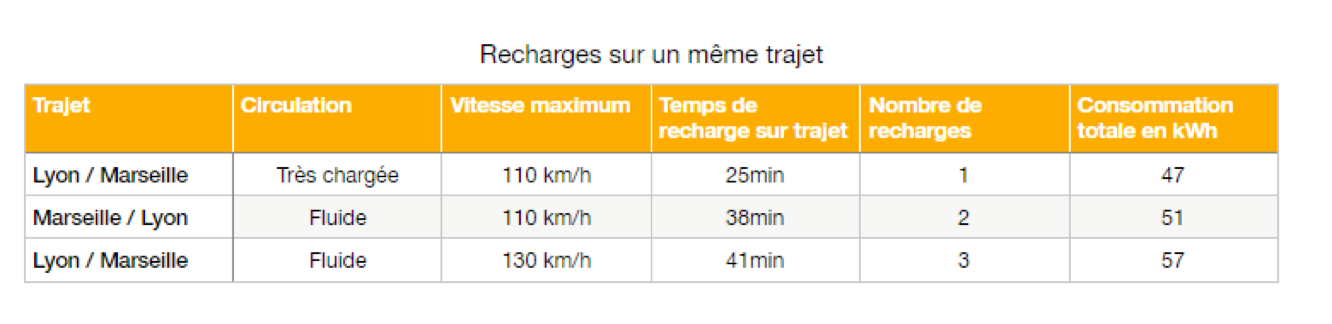 Temps de trajet 5h pour 310 km charge incluse. Ddans les mêmes conditions j’estime à 4h30 le temps de trajet que j’aurais eu en véhicule thermique